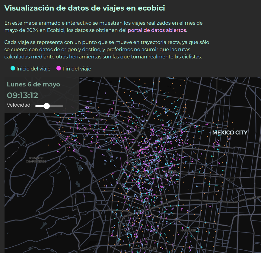 Este portalito reune varios datos sobre accidentes ciclistas y viajes en bicicletas públicas en la CDMX (ECOBICI), así como viajes en Guadalajara (MIBICI), y los visualizamos.